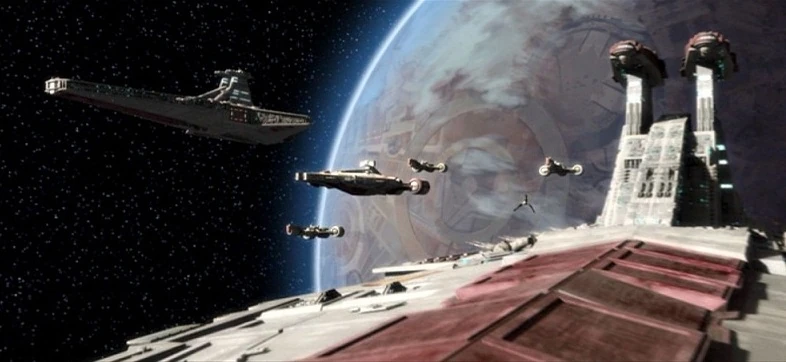 Zwei Leichte Kreuzer, einer unter dem Kommando von Admiral Kassius Konstantine, griffen die Flotte der Rebellen mit einem Sternzerstörer an. Die Kreuzer gaben einige Schüsse auf die Großkampfschiffe ab, danach wurden die heranfliegenden A-Flügler und schließlich das Trägerschiff das primäre Ziel. Als die Ghost jedoch Treibstoff und C1-10P Fluchtkoordinaten geliefert hatte, flohen die Rebellen in den Hyperraum.[27]