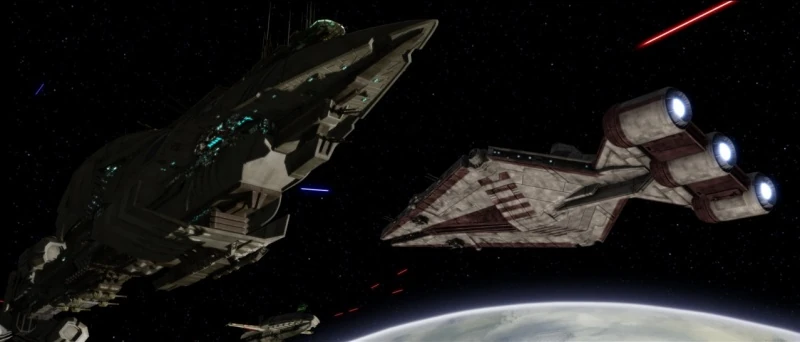 Nachdem die Separatisten die Siedler von Kiros entführt hatten, traf eine Hilfsflotte der Republik auf dem Planeten ein, der neben einer republikanischen Fregatte, einem Angriffsschiff und einem Jedi-Kreuzer auch zwei Republikanische Leichte Kreuzer angehörten.[18]