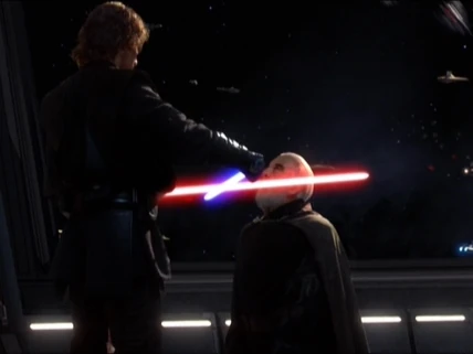 Den beiden Jedi gelingt es, an Bord des Flaggschiffes von General Grievous, der Unsichtbaren Hand, zu kommen und sich bis zum Kanzler vorzukämpfen. Als sie ihn befreien wollen, tritt ihnen Graf Dooku entgegen. Nach einem längeren Kampf schlägt er Obi-Wan bewusstlos, sodass Anakin ihm allein gegenübersteht. Dieser ist seit dem letzten Duell mit Dooku mächtiger und erfahrener geworden, und es gelingt ihm, Dooku schwer zu verwunden. Angestachelt vom gefesselten Kanzler enthauptet Anakin, entgegen dem Ehrenkodex der Jedi, den Wehrlosen.
