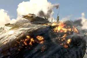 Das Schiff ist indessen im Begriff, aus dem Orbit zu fallen und Anakin macht sich daran, es zu stabilisieren und davor zu bewahren, dass es in Flammen aufgeht. In die Atmosphäre von Coruscant eingedrungen, kann Anakin mit der Unterstützung von vier Feuerschiffen das brennende Wrack auf einer industriellen Plattform notlanden. Der Oberste Kanzler Palpatine ist gerettet und wieder einmal hat der junge Jedi bewiesen, welche Kräfte und welches Talent in ihm stecken.