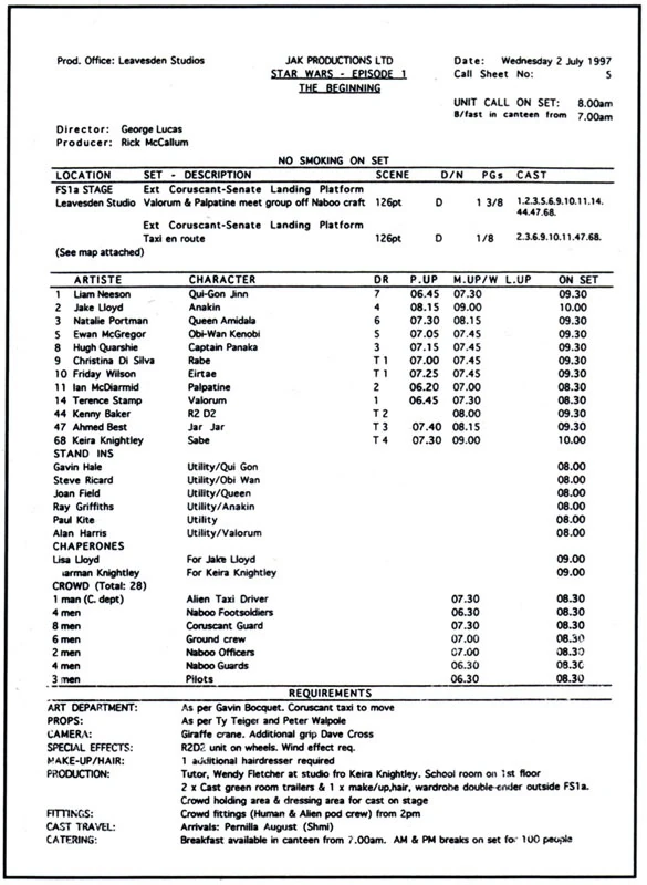 Man hatte bei der Zusammensetzung der Designabteilung auf eine Mischung aus talentierten Neulingen und erfahrenen Profis gesetzt. Einige kamen gerade erst von der Kunstakademie, McCallum hatte dafür zuvor mehrere Monate lang gezielt nach ihnen gesucht und mit seinen Mitarbeitern Tausende von Arbeitsproben ausgewertet. Andere hingegen, wie zum Beispiel der Produktionsdesigner Gavin Bocquet oder der Chef der Konzeptabteilung Doug Chiang waren schon länger im Geschäft und hatten sich in ihrem Arbeitsbereich bereits einen Namen gemacht. Um nun das umzusetzen, was Lucas sich für den Film vorstellte und auf einer immer länger werdenden Liste eintrug, traf sich das Team regelmäßig mit ihm, wobei man die einzelnen Entwürfe besprach und neue Aufgaben vergab. Die bereits erstellten Entwürfe wurden Lucas vorgelegt, der sie entweder verwarf, oder die Designer mit einigen Hinweisen daran weiterarbeiten ließ. Es dauerte etwas, bis sich das Team eingespielt hatte und die Arbeitsweise Routine geworden war, danach ging es jedoch umso besser voran.