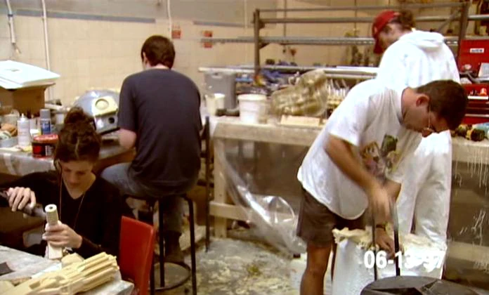 Die Requisitenabteilung fertigt Waffen an.