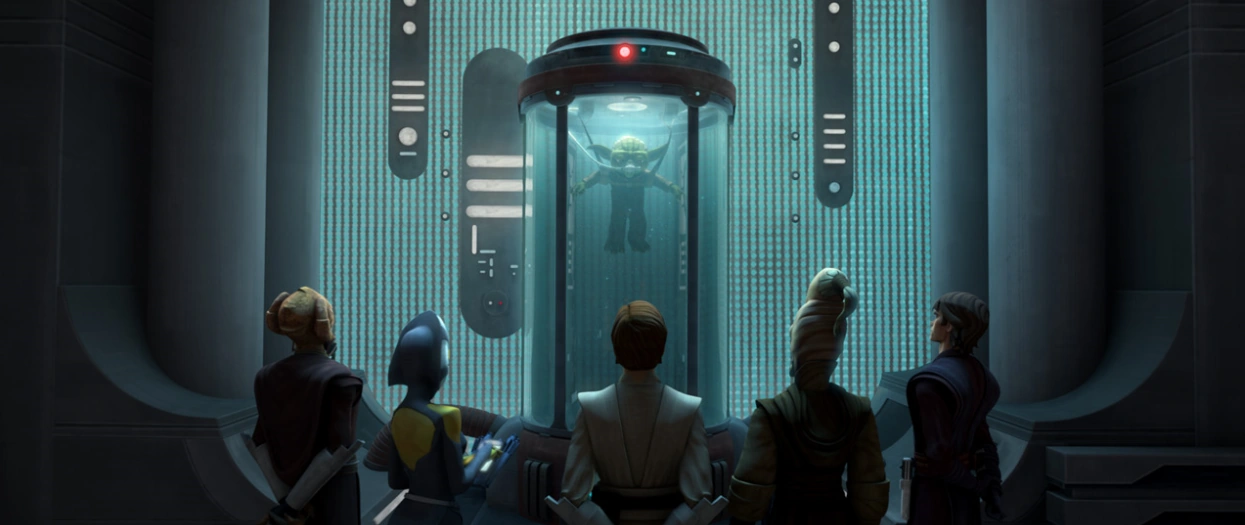 - Yodas Mission findet erstmals in in der The Clone Wars-Episode Stimmen vor, in Schicksal und Opfer wurde sie fortgesetzt.